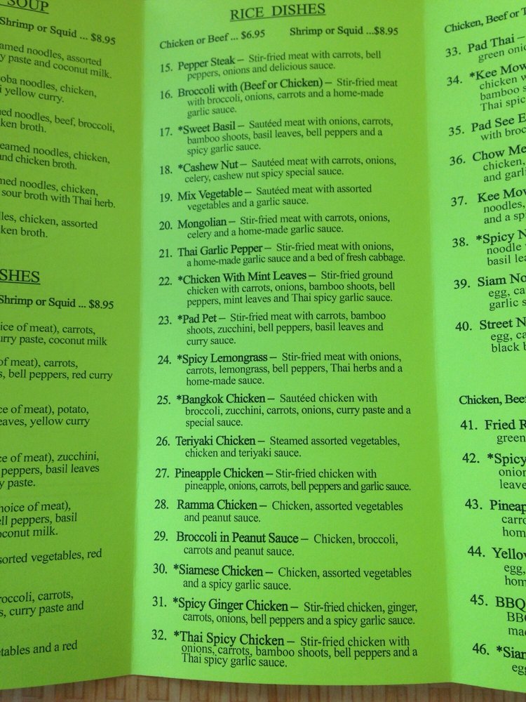 For those looking to indulge in heartier fares, the Thai Teriyaki Chicken or Thai Lemon Chicken are both stellar choices. Each dish features well-marinated grilled chicken accompanied by vibrant stir-fried vegetables and a luscious sauce that elevates the entire meal.